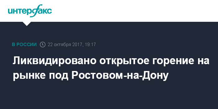 Москва. 22 октября. INTERFAX.RU - Пожарные ликвидировали открытое горение на хозяйственном рынке в Аксайском районе Ростовской области, сообщили агентству "Интерфакс" в пресс-службе ГУ МЧС России по региону.