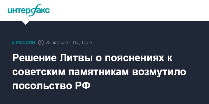 Решение Литвы о пояснениях к советским памятникам возмутило посольство РФ
