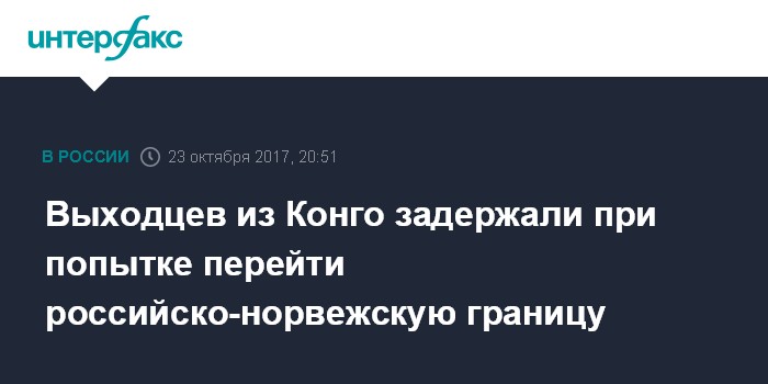 Москва. 23 октября. INTERFAX.RU - Группу выходцев из Конго задержали при попытке незаконно пересечь российско-норвежскую границу, сообщила пресс-служба УФСБ России по Мурманской области в понедельник.