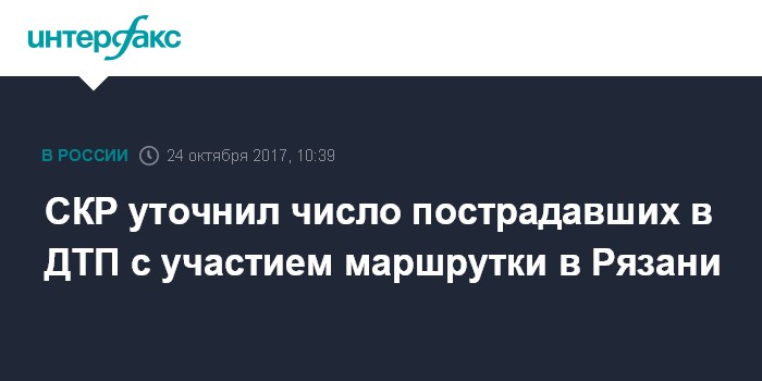 Москва. 24 октября. INTERFAX.RU - По уточненным данными, в результате ДТП с участием маршрутного такси в Рязани пострадали 18 человек, сообщила во вторник пресс-служба следственного управления СКР по региону.