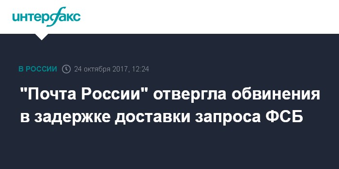 "Почта России" отвергла обвинения в задержке доставки запроса ФСБ
