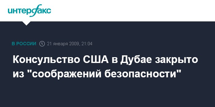Дубай. 21 января. INTERFAX.Ru - Консульство США в Дубае закрыто в среду "из соображений безопасности" после получения местными властями "некоторой информации".