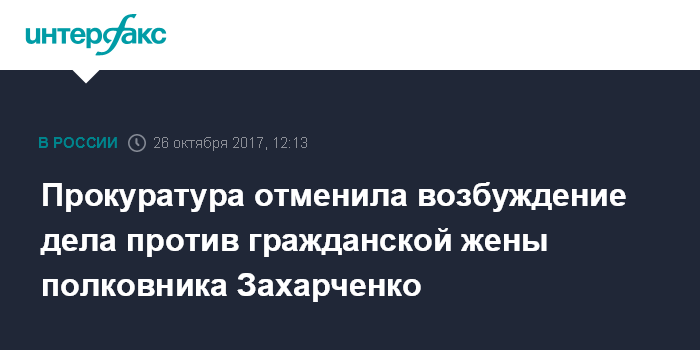 Прокуратура отменила возбуждение дела против гражданской жены полковника Захарченко