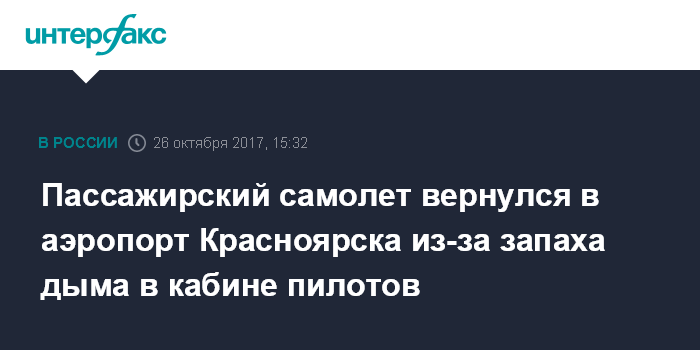 Пассажирский самолет вернулся в аэропорт Красноярска из-за запаха дыма в кабине пилотов