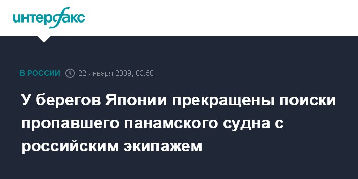 Ранее сообщалось, что 19 января у острова Хоккайдо в районе порта Румои было найдено тело одного из членов экипажа панамского судна "JI WON NO.1", связь с которым была потеряна еще 25 декабря. Погибший был в спасательном жилете с пропавшего панамского теплохода, и при нем паспорта четверых российских граждан.