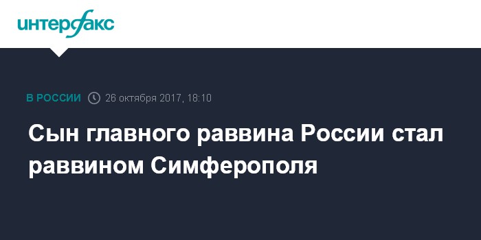 Москва. 26 октября. ИНТЕРФАКС - Сын главного раввина России Берла Лазара Йехезкель вступил в должность раввина Симферополя, сообщает в четверг Федерация еврейских общин страны.