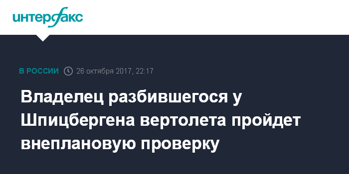 Москва. 26 октября. INTERFAX.RU - Владелец разбившегося у берегов Шпицбергена вертолета - компания "Авиационная компания Конверс Авиа" - подвергнется проверке на предмет соблюдения правил безопасности полетов, сообщили "Интерфаксу" в Минтрансе РФ в четверг.