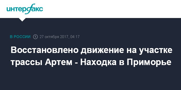 Владивосток. 27 октября. ИНТЕРФАКС - ДАЛЬНИЙ ВОСТОК - Движение транспорта на участке трасса Артем - Находка в Приморском крае, накануне нарушенное из-за повреждения моста через реку Лобога, восстановлено, сообщила в пятницу пресс-служба администрации региона.