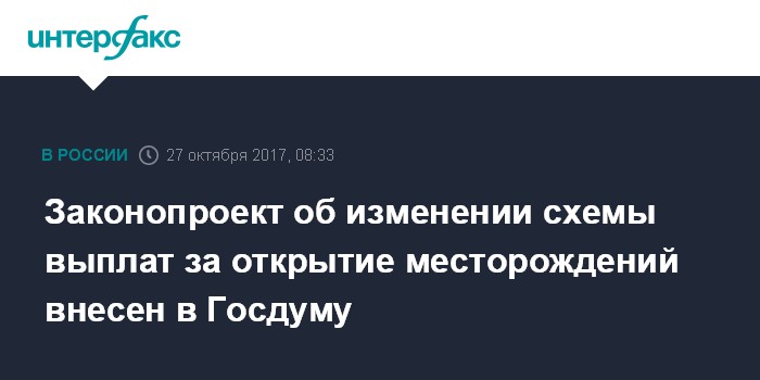 Законопроект об изменении схемы выплат за открытие месторождений внесен в Госдуму