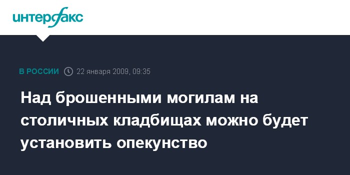 Москва. 22 января. INTERFAX.RU - Столичные власти приняли решение ввести на столичных кладбищах систему опекунства над брошенными захоронениями, сообщили "Интерфаксу" в городской администрации в четверг.