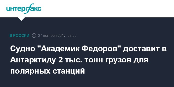 Судно "Академик Федоров" доставит в Антарктиду 2 тыс. тонн грузов для полярных станций
