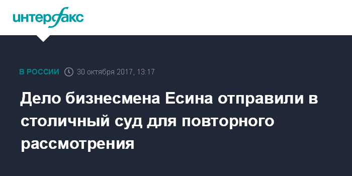 Дело бизнесмена Есина отправили в столичный суд для повторного рассмотрения