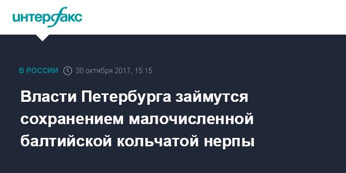Москва. 30 октября. INTERFAX.RU - Росприроднадзор по Северо-Западному федеральному округу совместно с властями Петербурга и учеными займется вопросами сохранения популяции балтийской кольчатой нерпы и серого тюленя, сообщил журналистам в понедельник начальник отдела по надзору в сфере особо охраняемых природных территорий Виталий Буров.