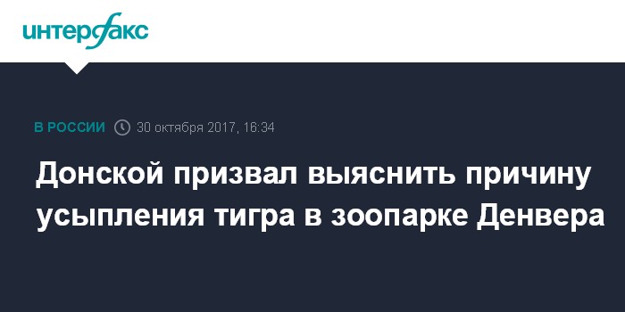 Москва. 30 октября. INTERFAX.RU - Министр природных ресурсов и экологии РФ Сергей Донской призвал выяснить причину заболевания тигра, который в субботу был усыплен в зоопарке Денвера.