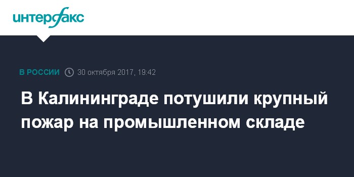 Москва. 30 октября. INTERFAX.RU - Пожарные ликвидировали крупное возгорание на промышленном складе на улице Краснокаменной в Калининграде. Об этом сообщил "Интерфаксу" начальник пресс-службы регионального МЧС подполковник Алексей Баранов.