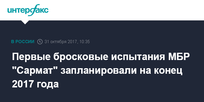 Первые бросковые испытания МБР "Сармат" запланировали на конец 2017 года