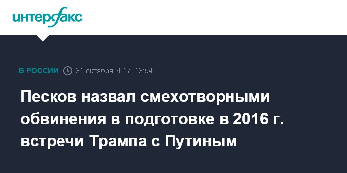 Песков назвал смехотворными обвинения в подготовке в 2016 г. встречи Трампа с Путиным