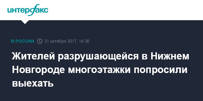 Москва. 31 октября. INTERFAX.RU - Администрация Советского района Нижнего Новгорода просит жильцов аварийного дома по улице Ломоносова покинуть свои квартиры.