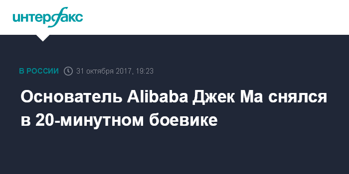 Москва. 31 октября. INTERFAX.RU - Основатель и глава китайского интернет-гиганта Alibaba Group Holdings Джек Ма сыграл одну из ролей в короткометражном боевике, сообщает китайское издание CGTN.com.