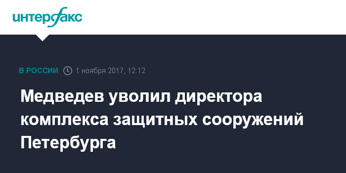 Медведев уволил директора комплекса защитных сооружений Петербурга