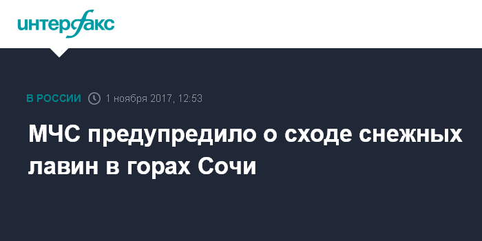Москва. 1 ноября. INTERFAX.RU - Экстренное предупреждение о лавиноопасности в горах Сочи распространили сотрудники Главного управления МЧС России по Краснодарскому краю в среду.