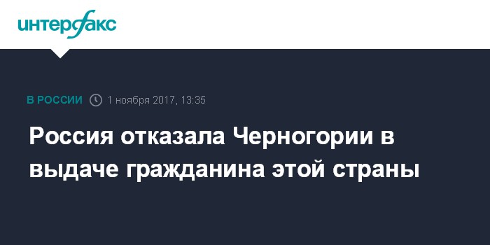 С учетом этого, отметили в пресс-службе, "Генеральная прокуратура РФ в соответствии с положениями Европейской конвенции о выдаче от 13 декабря 1957 года отказала в удовлетворении запроса черногорской стороны".
