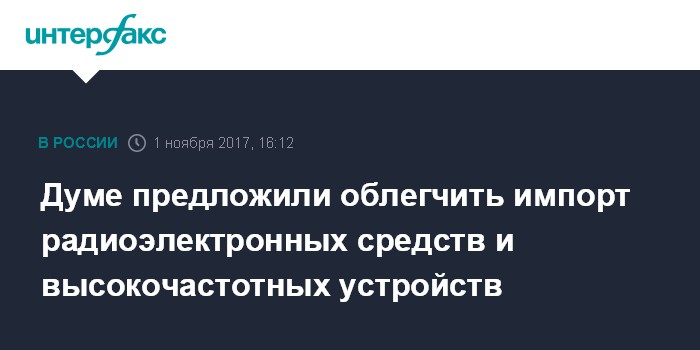 Думе предложили облегчить импорт радиоэлектронных средств и высокочастотных устройств