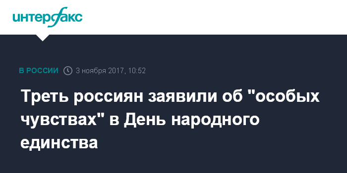 По словам трети россиян (36%), в День народного единства они "испытывают особые чувства, задумываются о прошлом и будущем страны". В то же время 48% воспринимает этот день как обычный выходной.