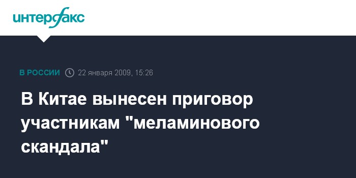 Пекин. 22 января. INTERFAX.RU - Бывший председатель совета директоров и генеральный менеджер компании Sanlu, оказавшейся в центре "меламинового скандала", Тянь Вэньхуа в четверг была приговорена судом к пожизненному лишению свободы, сообщает издание "Чайна дейли".