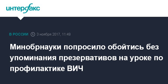 Как пишет газета, 2 ноября прошло рабочее совещание по подготовке к очередному интернет-уроку, которое провела замдиректора одного из департаментов Минобрнауки Лариса Фальковская. "Впервые в жизни совещание в Минобрнауки закончилось скандалом по моей вине: я отказался писать тексты ответов участникам открытого онлайн-урока по профилактике ВИЧ",- рассказал "Коммерсанту" руководитель группы некоммерческих организаций, которые занимаются организацией открытого урока, Сергей Буланов. По его словам, чиновники посчитали "недопустимым к употреблению слово "презерватив", после чего совещание было остановлено".