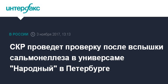 СКР проведет проверку после вспышки сальмонеллеза в универсаме "Народный" в Петербурге