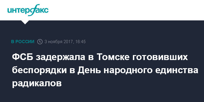 Москва. 3 ноября. INTERFAX.RU - Управление ФСБ по Томской области пресекло организацию массовых беспорядков в День народного единства, сообщили в пресс-службе ведомства в пятницу.
