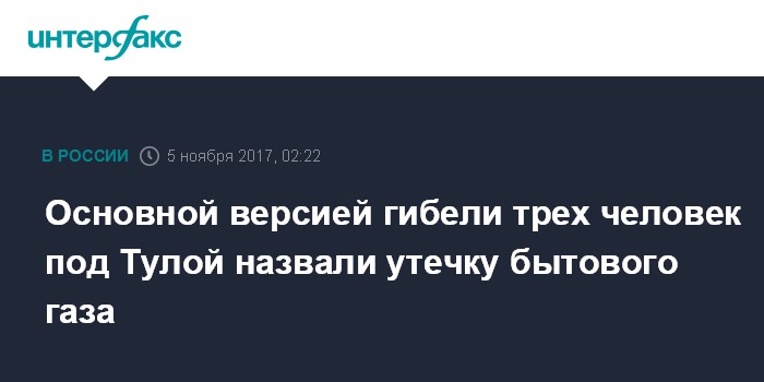 Основной версией гибели трех человек под Тулой назвали утечку бытового газа