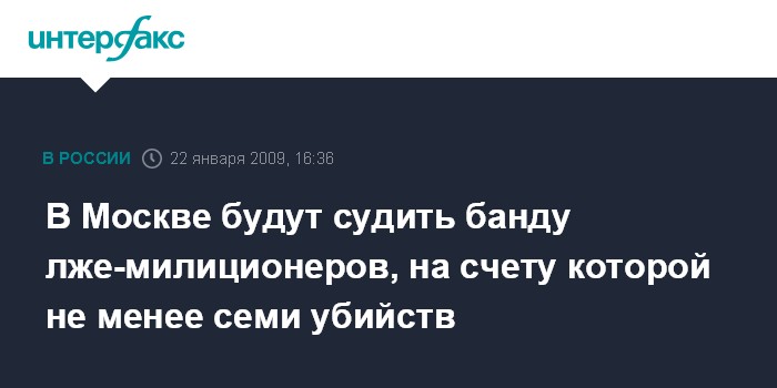 Москва. 22 января. INTERFAX.RU - Банда лже-милиционеров, которую возглавлял действующий сотрудник милиции, предстанет перед судом в Москве по обвинению в убийствах и разбойных нападениях.