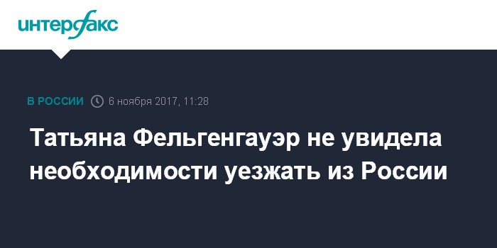 Татьяна Фельгенгауэр не увидела необходимости уезжать из России