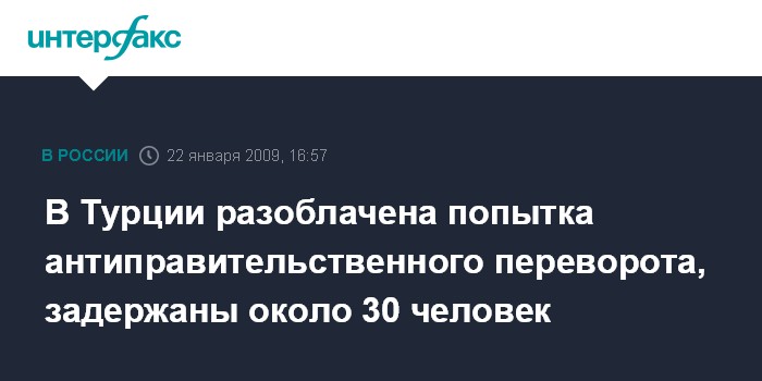 Москва. 22 января. ИНТЕРФАКС - Не менее 26 человек задержаны в разных частях Турции в рамках расследования деятельности запрещенной группировки "Эргенекон", участники которой смогли просочиться в высшие руководящие органы страны с целью организации антиправительственного переворота.