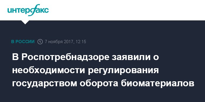 Москва. 7 ноября. INTERFAX.RU - Глава Роспотребнадзора, главный государственный санитарный врач России Анна Попова заявила, что оборот биоматериалов требует государственного регулирования.