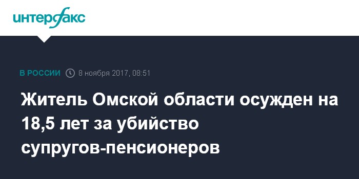 Москва. 8 ноября. INTERFAX.RU - Суд приговорил к длительному заключению жителя Большереченского района Омской области за убийство пожилой семейной пары, сообщает областная прокуратура.