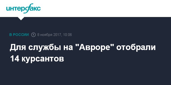Москва. 8 ноября. INTERFAX.RU - На кейсер 1-го ранга "Аврора" отобрано 14 курсантов, проходящих военную службу в объединенном учебном центре Военно-морского флота Российской Федерации в Санкт-Петербурге.