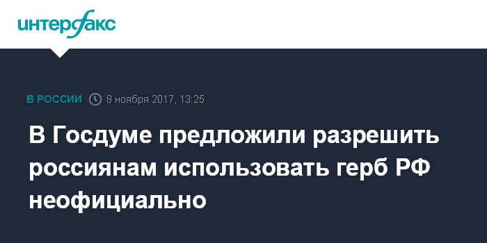 Москва. 8 ноября. INTERFAX.RU - Спикер Госдумы Вячеслав Володин и председатель комитета палаты по госстроительству Павел Крашенинников внесли на рассмотрение Госдумы законопроект о снятии ограничений на неофициальное использование гражданами герба РФ, сообщает официальный сайт нижней палаты парламента.