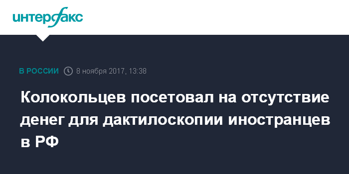 Москва. 8 ноября. INTERFAX.RU - Обязательная дактилоскопия для иностранцев может быть введена только после поступления соответствующего финансирования, заявил глава МВД РФ Владимир Колокольцев.