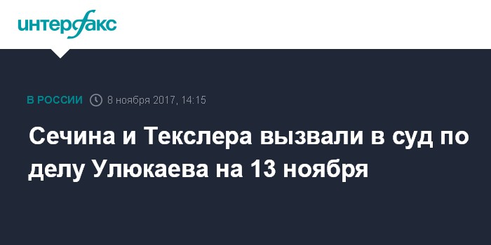 Сечина и Текслера вызвали в суд по делу Улюкаева на 13 ноября