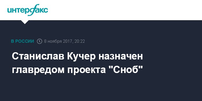 Москва. 8 ноября. INTERFAX.RU - Главным редактором проекта "Сноб" с 8 ноября стал журналист Станислав Кучер.