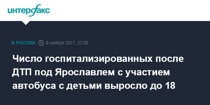 Данные о пострадавших назывались разные: от 14 до 20 человек. По информации главного управления МЧС по Ярославской области, 13 детей и водитель доставлены в больницу. Водитель находится в тяжелом состоянии.