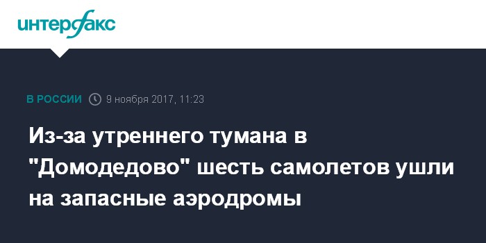 Ранее источник "Интерфакса" в авиадиспетчерских службах московской воздушной зоны сообщал, что утренний туман в аэропортах Москвы спровоцировал уход на запасные аэродромы нескольких рейсов из "Домодедово" и "Внуково".