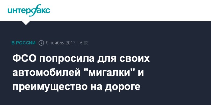 Москва. 9 ноября. INTERFAX.RU - Федеральная служба охраны РФ (ФСО) предложила оснастить свои автомобили проблесковыми маячками синего и красного цвета и дать им преимущество на дороге. Соответствующий проект постановления правительства опубликован на портале regulation.gov.ru в четверг.