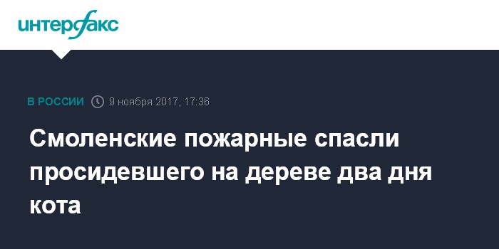 Москва. 9 ноября. INTERFAX.RU - Пожарные под Смоленском провели спасательную операцию по снятию с дерева кота, просидевшего там несколько дней, сообщает пресс-служба ГУ МЧС по региону. Инцидент произошел в поселке Каспля Смоленского района.