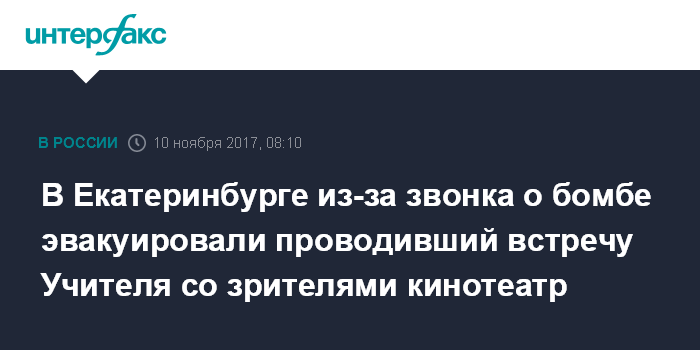 В Екатеринбурге из-за звонка о бомбе эвакуировали проводивший встречу Учителя со зрителями кинотеатр