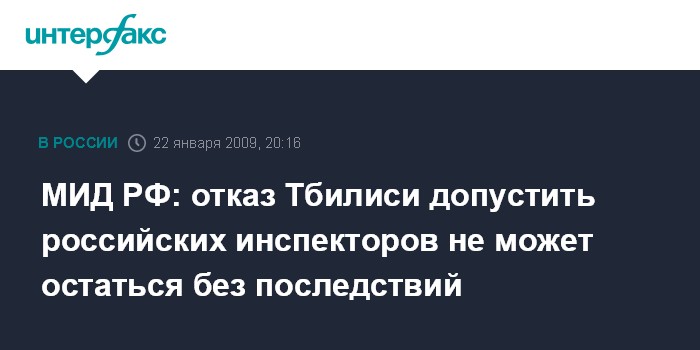 МИД РФ: oтказ Тбилиси допустить российских инспекторов не может остаться без последствий