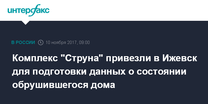 Комплекс "Струна" привезли в Ижевск для подготовки данных о состоянии обрушившегося дома